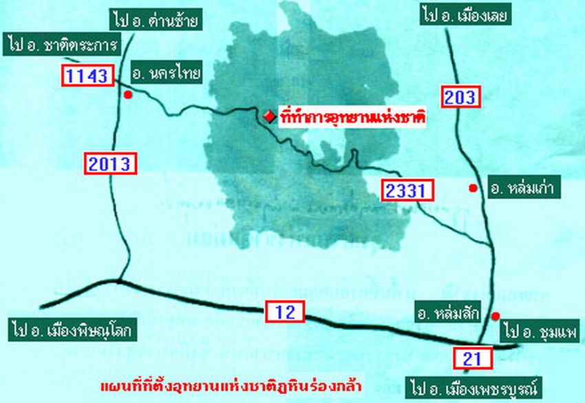 แผนที่ ประกอบ การเดินทางเพิ่มเติมฯ.........ซึ่งถ้าเป็นไปได้ ถ้าจะต้องเดินทางกลางคืนฯ แล้วละก็ แนะนำให้พวกเรา ขึ้น ภูหินร่องกล้าฯ ทางด้าน พิษณุโลกฯ ดีกว่า ถ้าเลือกได้ เพราะเส้นทาง ดูเหมือนอาจจะไกล และอ้อมซักหน่อย ถ้ามาจากด้านอื่นฯ แต่ เส้นทางจะง่ายกว่า ซึ่งปลอดภัยขึ้นเขาไม่ชันมาก และข้อสำคัญ ไม่เปลี่ยว เหมือนขึ้นทางด่านทับเบิก ซึ่งต้องขับมาแบบไม่มีบ้านผู้คนอีกประมาณ 20 กว่า กม.......แต่ถ้ามือเก๋า ไม่ว่ากัน!.......