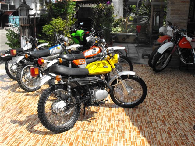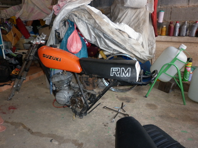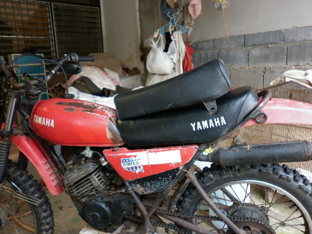 รถเล็กแฮนด์ต่ำ แคบ เอาไว้ขับเล่นง่ายๆ ขาไฟท้ายเอาของ DT100 X เชื่อมด้วยขายึดทับทิมของ SR 400 เจียร์ตัดแป้นท้ายนิดหน่อยใส่ไฟท้ายกลม(เทียม) บังโซ่ แพง ไม่ซื้อเอาของ RX-S เก่าๆตัดเจียร์เจาะต่อขาเอา หูไฟเลี้ยวหลังไม่ได้ซื้อเพราะแพง ดัดเหล็กเอา หางปลาทิ้งไปเอาหอยโข่งDT 125 มาแทนเจาะฝังน็อตหกเหลี่ยมเบอร์ 8 เพื่อขัดกับร่องตั้งโซ่ที่หอยโข่ง