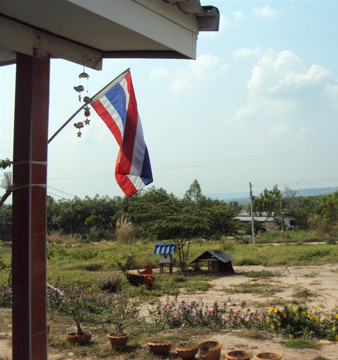 ถึงจะเป็นชาวบ้านธรรมดาที่อยู่กลางป่าเขาลำเนาไพร แต่ธงชาติไทย มีติดบ้านเสมอครับ ...