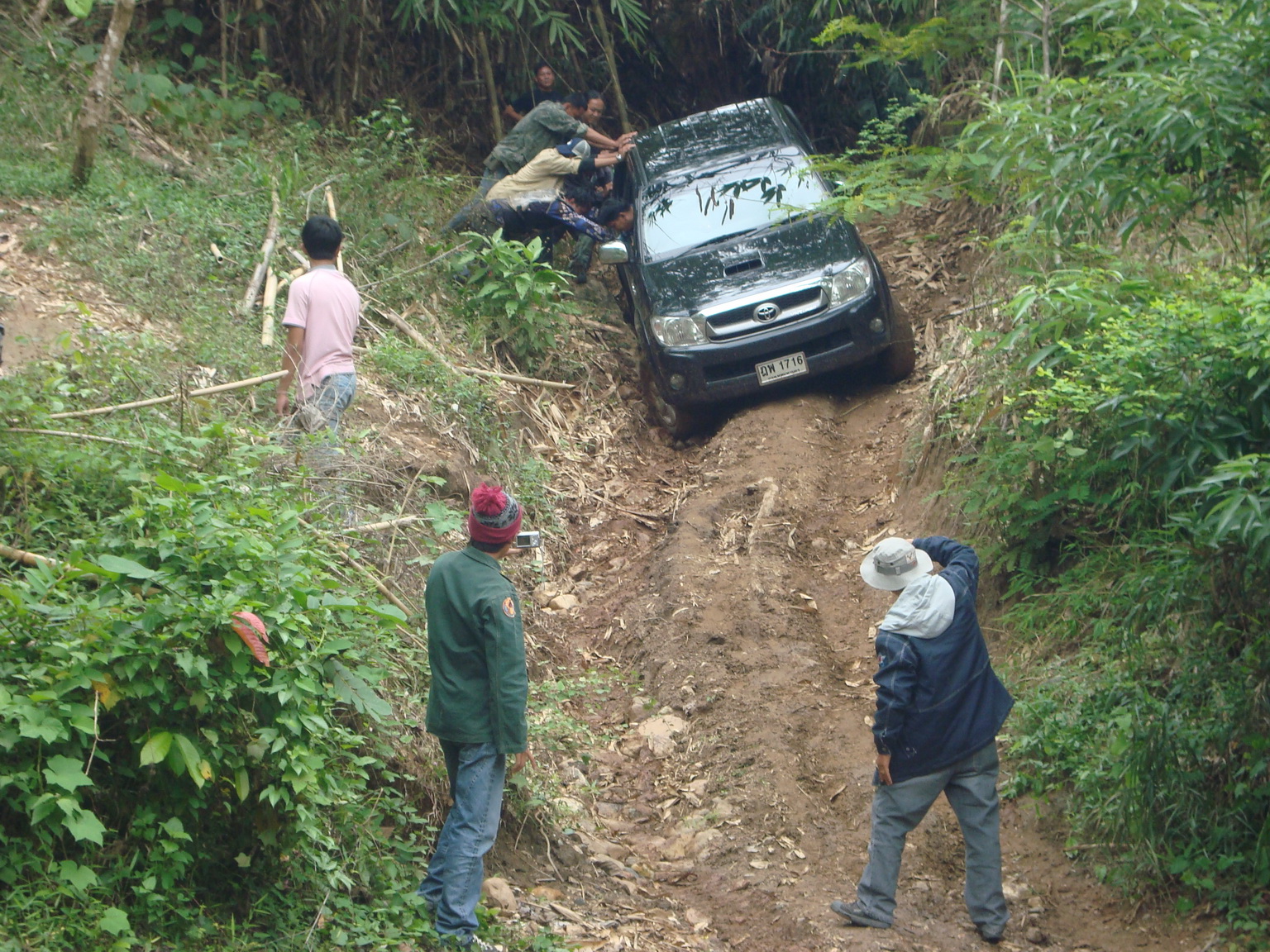 เห็นสภาพถนนหนทางแล้ว ถ้าเป็นจี๊ปทหาร ดูจะเข้ากันดีนะ คันนี้ถ้าคว่ำ เสียหายหนักๆ น่าเสียดาย