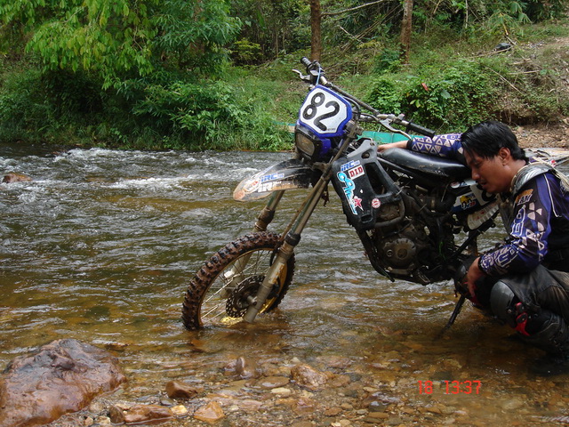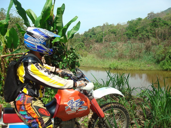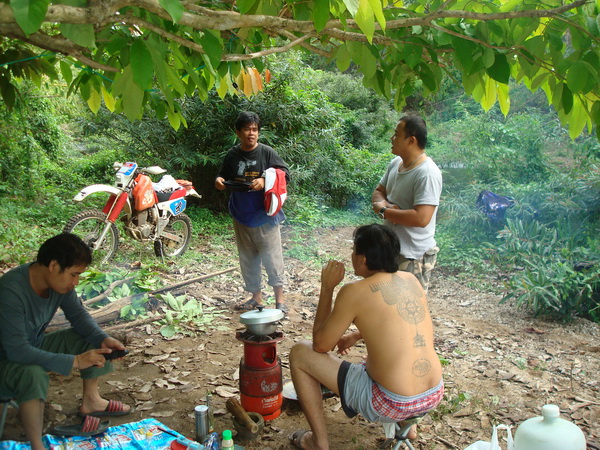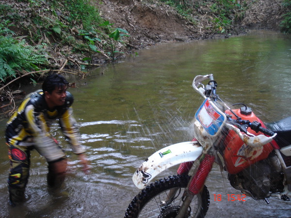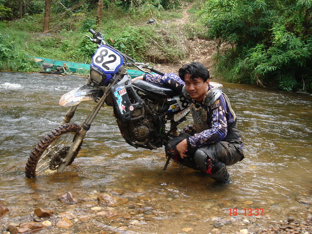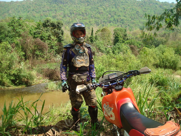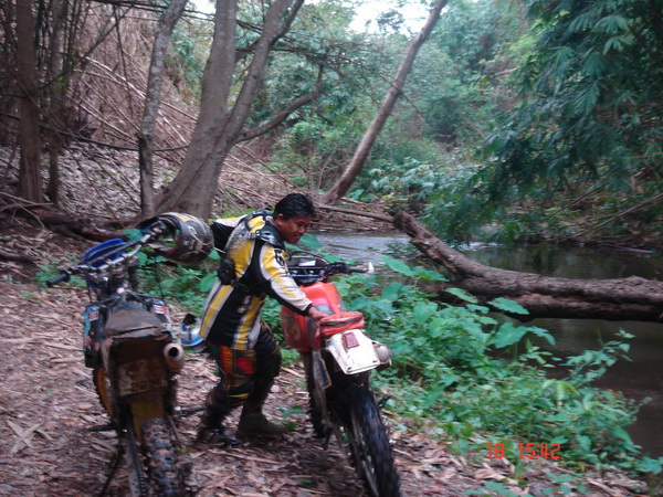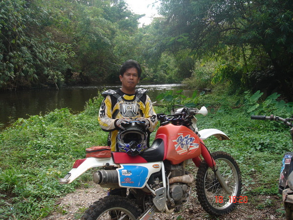 ก็จะขอคุยเรื่องที่มาของทริปนี้ จากที่ผมได้รู้จักกับพี่วิโรจน์ viroj นนทบุรีกับพี่เผือก ninja zx13 นนทบุรี ในเว็ป dirttrackthai.com ก็ติดต่อกันจนมาออกทริปขับรถเอ็นดูโร่ที่กองผสมพันธ์สัตว์ กาญจนบุรี ก็ติดต่อกันเรื่อยมา พี่วิโรจน์ก็บอกกับผมว่าเล่นรถเอ็นดูโร่ xr250มาก็หลายคันและออกทริปต่างๆมาก็มากพอสมควร แต่ยังไม่เคยออกทริปไหนที่ไม่เคยตามรอยรถใครเลย ก็มาออกทริปที่กาญจนบุรีมีที่ขับรถเอ็นดูโร่มากมายเช่นที่เหมืองเต่าดำ เขาสลักพระ ทุ่งใหญ่นเรศวร ฯลฯ มีที่ขับขี่อีกมากมาย อยากจะเก็บความประทับใจไว้ซักครั้งว่าออกทริปขี่รถเอ็นดูโร่ที่ไม่เคยตามรอยรถใครซักครั้ง ผมก็มาคิดดูว่าแล้วจะมีที่ไหนละที่ไม่มีใครใช้ทาง ผมเลยเก็บความในใจนี้ไว้แล้วเริ่มค้นหา หาข้อมูลต่างๆจากผู้รู้ต่างๆหลายท่าน แล้วเดินทางไปสำรวจหาข้อมูลต่างๆไว้ ท่านผู้อ่านคงแปลกใจว่าผมทำไปทำไมให้ลำบาก ผมทำไปด้วยใจ ไม่มีค่าจ้างใดๆทั้งสิ้น เพียงแต่ประทับใจในมิตรภาพที่พี่วิโรจน์,พี่เผือก มอบให้ผม โดยที่ไม่รู้จักกันมาก่อน เพียงรู้จักกันในเน็ตก็กล้ามาออกทริปกับพวกผม โดยที่ไม่คิดถึงฐานะเงินทอง ซึ่งในปัจจุบันนี้หาคนอย่างนี้น้อยมาก ผมจึงมุ่งมั่นเสาะหาเส้นทางตลอดมาเกือบครึ่งปีได้ครับ จนมาเจอที่แม่น้ำน้อย-โป่งใหญ่แม่น้ำเลาะแล้วเดินทางต่อไปที่แม่น้ำน้อยเขารวก ทองผาภูมิ ซื่งเส้นทางนี้ถูกปิดตายมาหลายปี ครับ