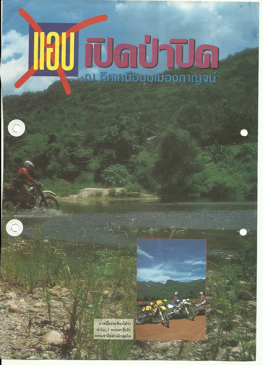 ก็จะขอคุยเรื่องที่มาของทริปนี้ จากที่ผมได้รู้จักกับพี่วิโรจน์ viroj นนทบุรีกับพี่เผือก ninja zx13 นนทบุรี ในเว็ป dirttrackthai.com ก็ติดต่อกันจนมาออกทริปขับรถเอ็นดูโร่ที่กองผสมพันธ์สัตว์ กาญจนบุรี ก็ติดต่อกันเรื่อยมา พี่วิโรจน์ก็บอกกับผมว่าเล่นรถเอ็นดูโร่ xr250มาก็หลายคันและออกทริปต่างๆมาก็มากพอสมควร แต่ยังไม่เคยออกทริปไหนที่ไม่เคยตามรอยรถใครเลย ก็มาออกทริปที่กาญจนบุรีมีที่ขับรถเอ็นดูโร่มากมายเช่นที่เหมืองเต่าดำ เขาสลักพระ ทุ่งใหญ่นเรศวร ฯลฯ มีที่ขับขี่อีกมากมาย อยากจะเก็บความประทับใจไว้ซักครั้งว่าออกทริปขี่รถเอ็นดูโร่ที่ไม่เคยตามรอยรถใครซักครั้ง ผมก็มาคิดดูว่าแล้วจะมีที่ไหนละที่ไม่มีใครใช้ทาง ผมเลยเก็บความในใจนี้ไว้แล้วเริ่มค้นหา หาข้อมูลต่างๆจากผู้รู้ต่างๆหลายท่าน แล้วเดินทางไปสำรวจหาข้อมูลต่างๆไว้ ท่านผู้อ่านคงแปลกใจว่าผมทำไปทำไมให้ลำบาก ผมทำไปด้วยใจ ไม่มีค่าจ้างใดๆทั้งสิ้น เพียงแต่ประทับใจในมิตรภาพที่พี่วิโรจน์,พี่เผือก มอบให้ผม โดยที่ไม่รู้จักกันมาก่อน เพียงรู้จักกันในเน็ตก็กล้ามาออกทริปกับพวกผม โดยที่ไม่คิดถึงฐานะเงินทอง ซึ่งในปัจจุบันนี้หาคนอย่างนี้น้อยมาก ผมจึงมุ่งมั่นเสาะหาเส้นทางตลอดมาเกือบครึ่งปีได้ครับ จนมาเจอที่แม่น้ำน้อย-โป่งใหญ่แม่น้ำเลาะแล้วเดินทางต่อไปที่แม่น้ำน้อยเขารวก ทองผาภูมิ ซื่งเส้นทางนี้ถูกปิดตายมาหลายปี ครับ