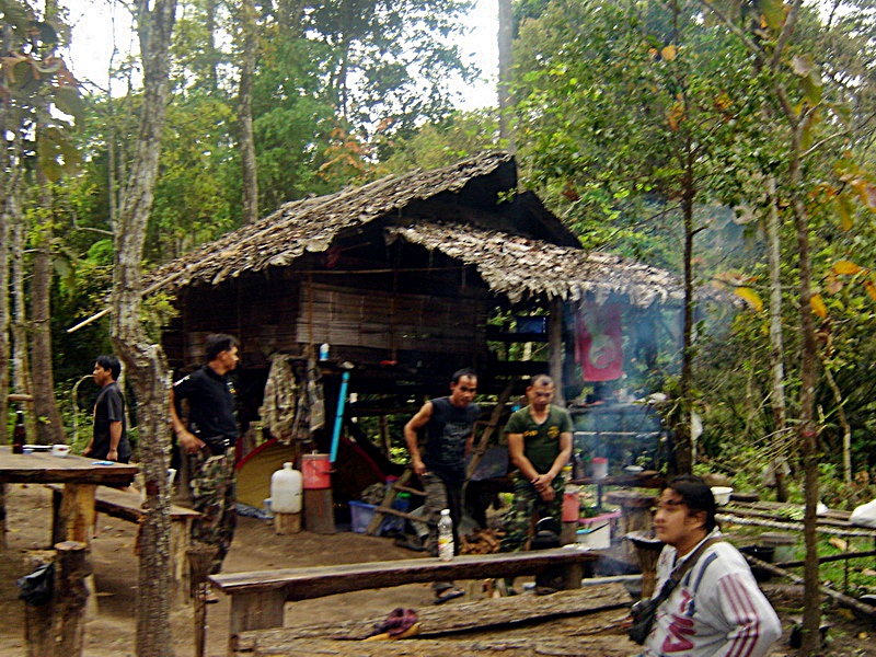 และแล้วเราก็มาถึง ที่พักของป่าไม้ เขาจะผลัดเวรกัน ทีมละ 5 วัน ถ้าไม่อย่างนั้น พวกชาวบ้าน ตัดป่าหมดแน่ครับ