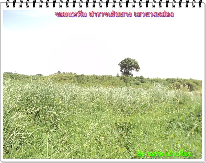 สุดท้ายเราก็ ผ่านป่ามะม่วงขึ้นมา บนเนิน สูงได้ ครับ เบื้องหน้า คือร่องหินที่เรา คิดว่าน่าจะวิ่งสวนขึ้นไป