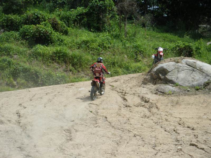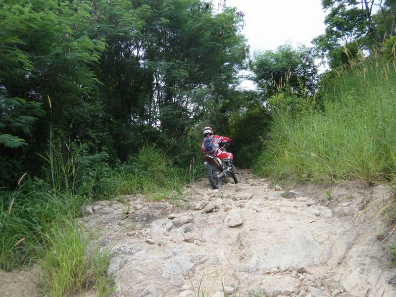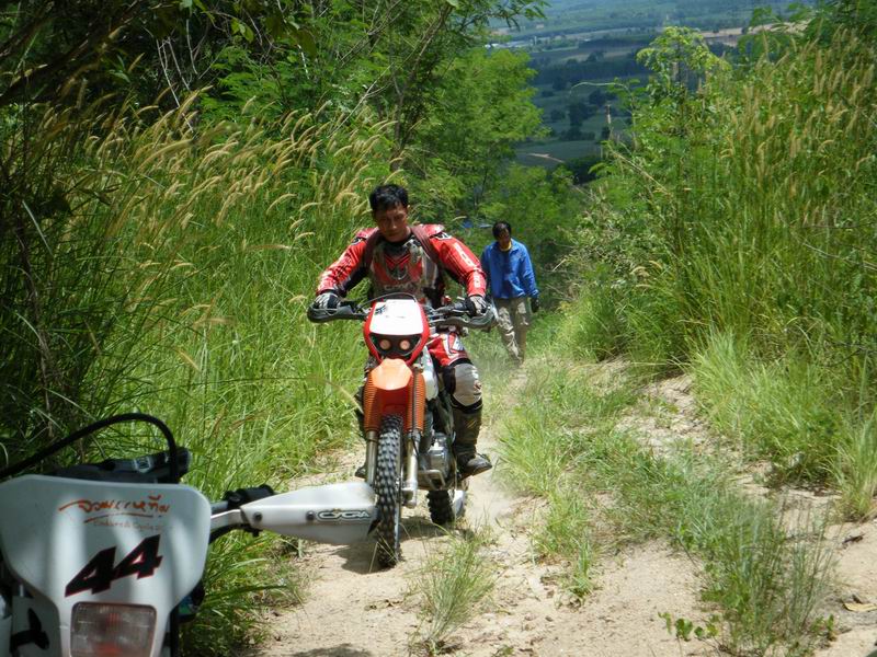 นี้ลงชันๆระดับ45องศานะครับดินซุยๆร่องน้ำก็ลึกเต็มไปหมดเบรคหน้ามากก็บัดไม่ตรงทิศตรงทางดีไม่ดีตูดกระดกเบรคหลังมากก็ขว้างลำจะปล่อยไหลก็ข้างล่างลงแล้วต้องเลี้ยวเลยถ้าทะลุไปก็ต้นไม้กับคันดินหลุดไปก็เจ็บแยะละครับสรุปว่าสนุกดีละกัน55555