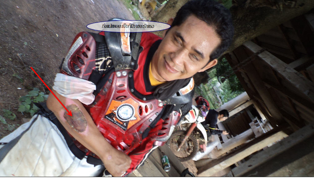 หมวดพจน์โชว์บาดแผลจากการชนหมาเมื่ออาทิตย์ก่อน แต่ใจรักในการขี่รถเลยมากับเขาทั้งๆที่เจ็บแผลอยู่
