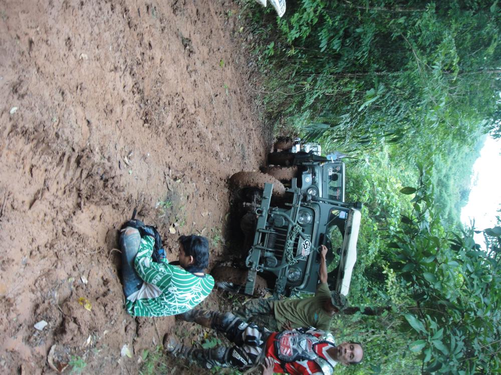 จากจุดนี้ยังต้องอีก 2 โค้ง ชันๆลื่นๆ ไปไม่ไหวทีมงานลงมติด้วยเสียงข้างมากว่า"ถอย" เพราะดันทุลังไปไม่ไหวต้องดึงเชอืกทีละคัน ไหนจะต้องเก็บแรงไว้ขากลับอีก ฝนก็เริ่มโปรยมา โอกาสหน้าจะไปแบบ แห้ง ไม่เอา น้ำ
