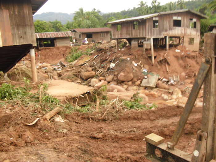 สภาพบ้านเรือนที่ถูกน้ำป่าซัดก็อย่างที่เห็นครับ