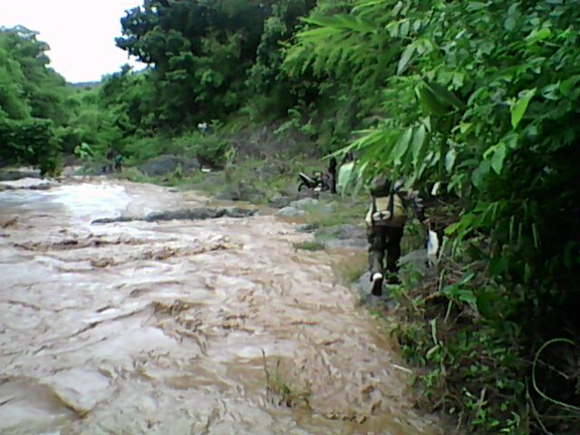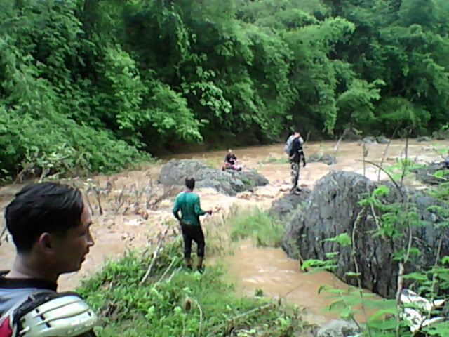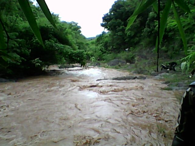 เปลียนเส้นทางสายนี้ เพราะวันนี้ขณะกำลังข้ามห้วยอยู่ๆ น้ำเปลี่ยนสีเป็นสีแดงแล้วน้ำก้อนใหญ่ไหลมา