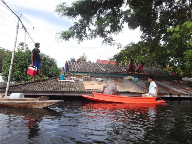 คงต้องนั่งเรือมาช่วยแล้วละครับ ระดับน้ำท่วมสูงมากครับ