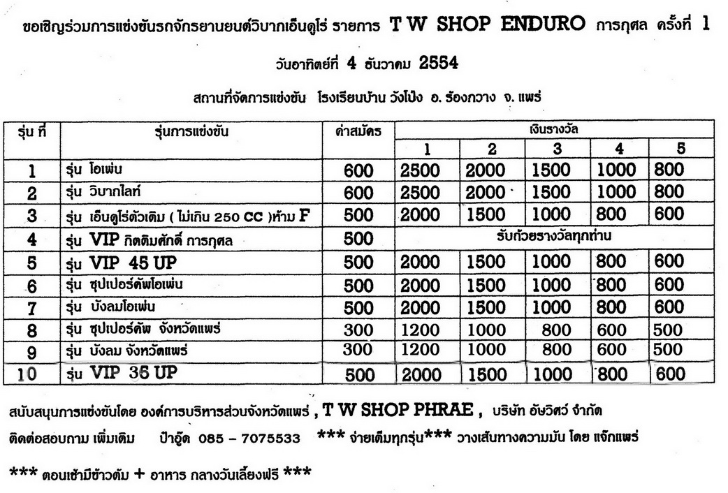 แก้ไขค่าสมัครและสำหรับรุ่นบังลมและ SUPER CUP เมืองแพร่ ครับ