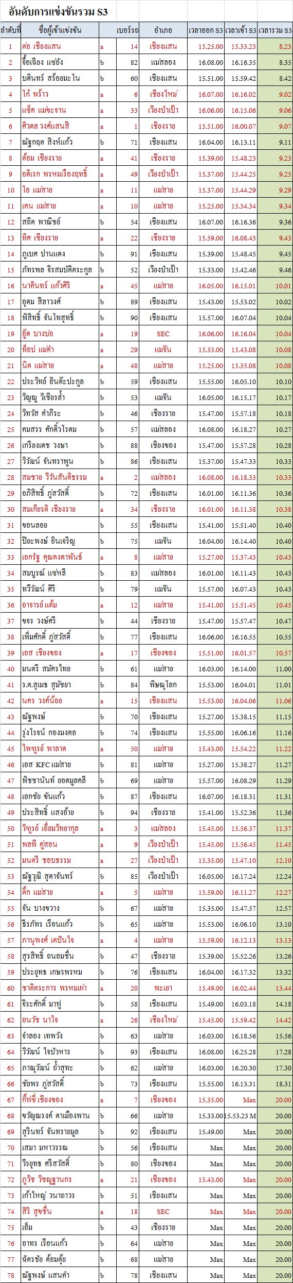 ทำการแข่งขัน 3 ช่วงทดสอบ (3ss)