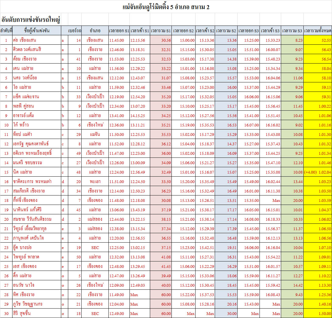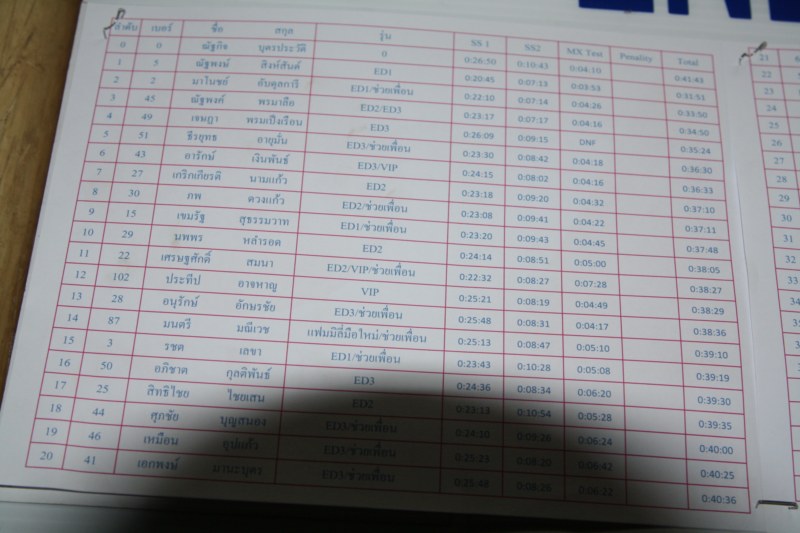หมายเหตุ : รุ่นที่ 2 เอ็นดูโร่ไลท์เวท 4 จังหวะไม่เกิน 250cc หรือสูตร 2 จังหวะไม่เกิน125cc หรือ250F