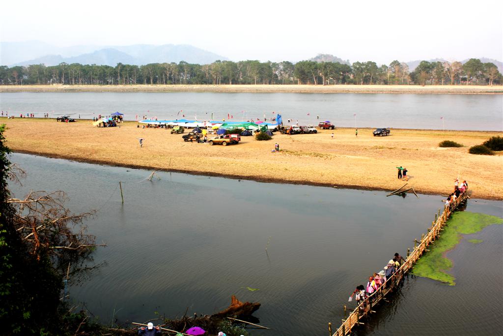 เฮฮาสงกรานต์เชียงแสน บรรยากาศสนามโดยรวมขี่กันในเกาะแม่น้ำโขง