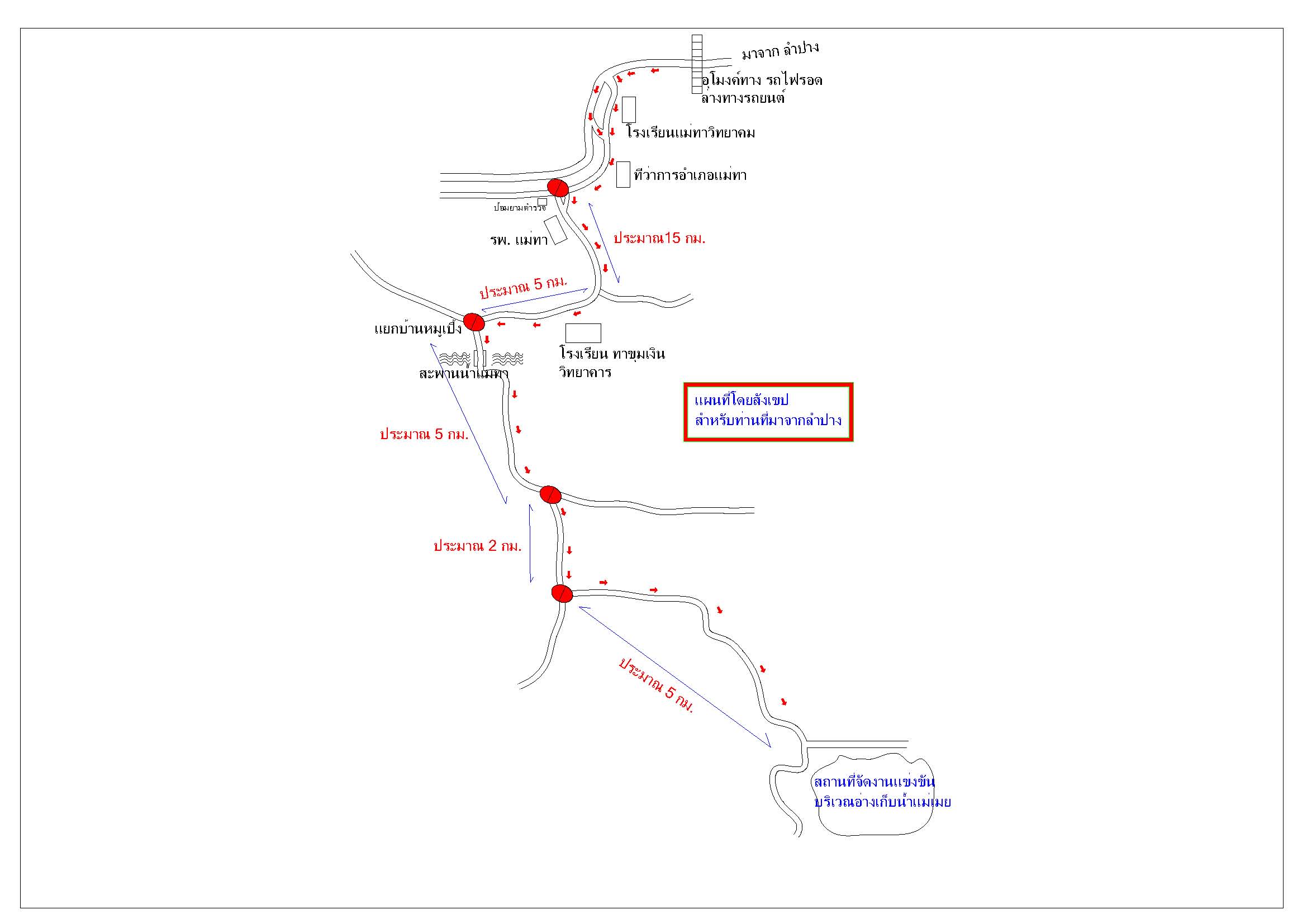 แผนที่พอสังเขป จากแยกดอยติเส้นทางหลางหมายเลข 11 ไปถึงสถานที่จัดงานสำหรับคนที่ไม่รู้เส้นทาง ครับ