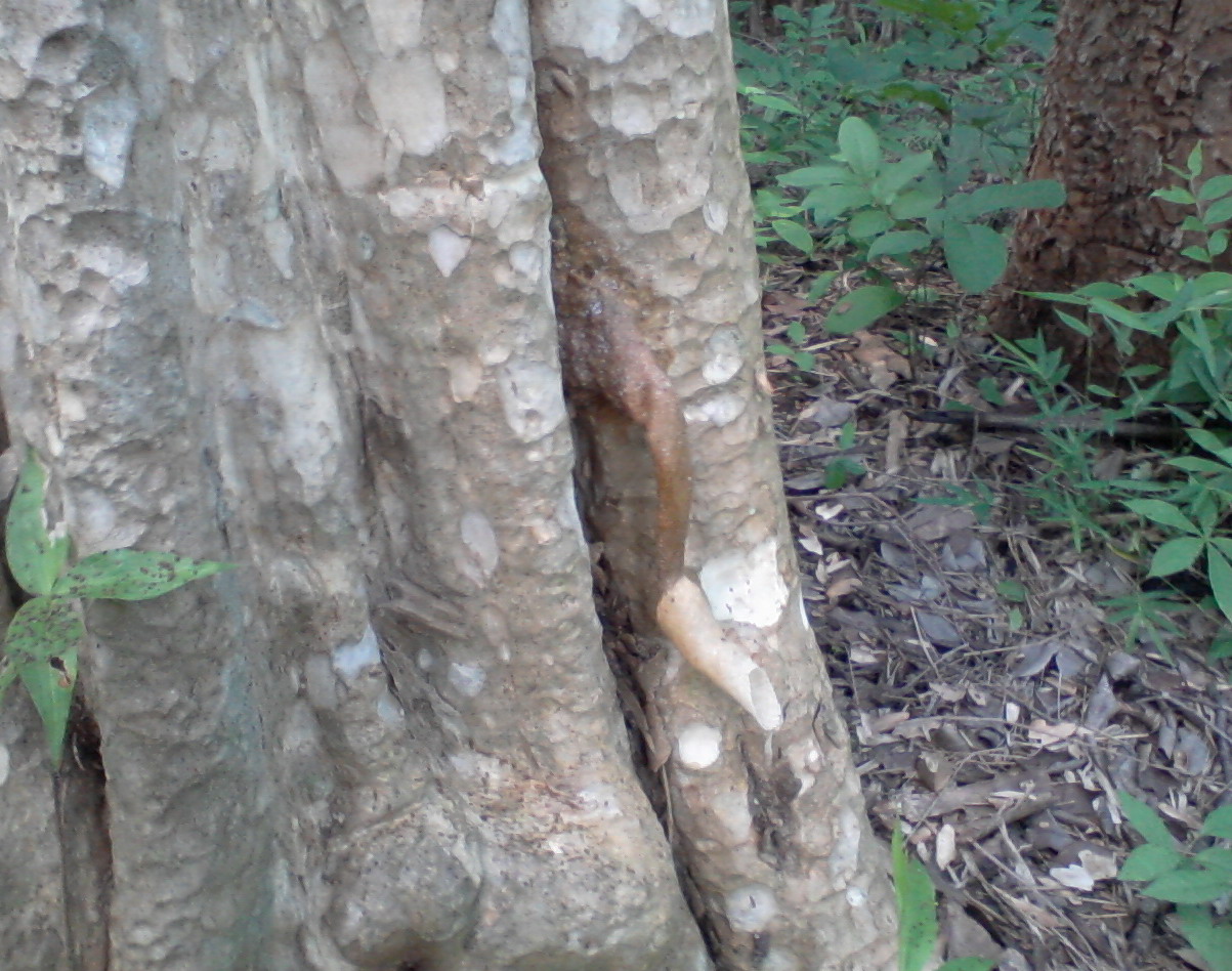 ต้นทุเรียนกลางป่า ไร้ใบ ไร้เนื้อเหลือแต่เปลือกเกาะอยู่ที่กิ่ง