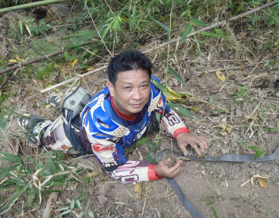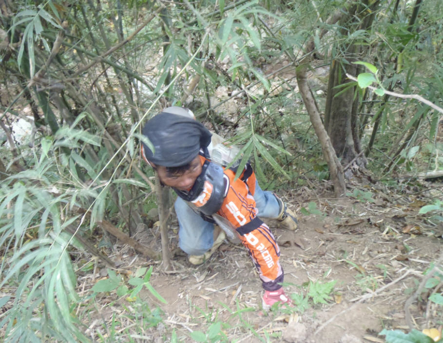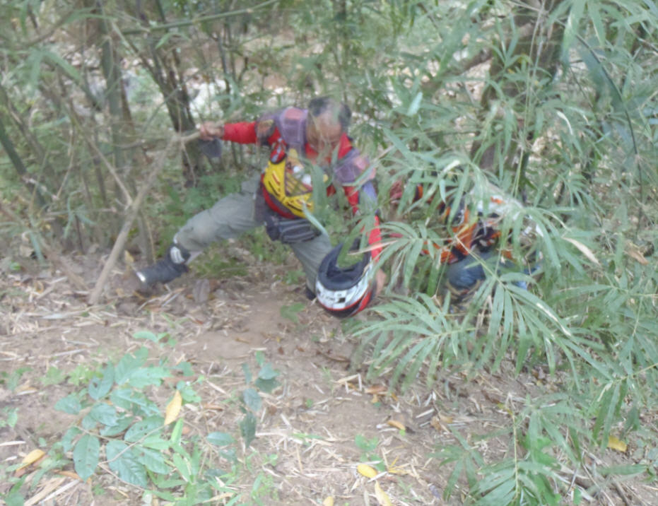เส้นทางช่วงนี้ชันมากครับ ผมงี้ยืนไม่ได้เลยไถลลงไปยังกับมีคนดึงครับต้องใช้เชือกเป็นตัวช่วยกันเลยครับ