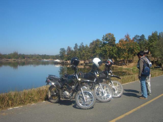แล้วก้อผ่านทางเกือบโหด พี่เอช ตัวดันโซ่หลุด ได้หยุดกันกลางดอยซ่อมเล็กๆ แล้วเราก้อเกือบหลุดโค้งกันหลายที มีรถฮอนด้าดรีม หรือคลิ๊ก กลิ้งลงข้างทางไป คันครับ หะหะ ที่สุดเราก้อ มาอยู่กันที่สันเขื่อน ห้วยตึงเฒ่าคร๊าบ มันส์ อิอิ