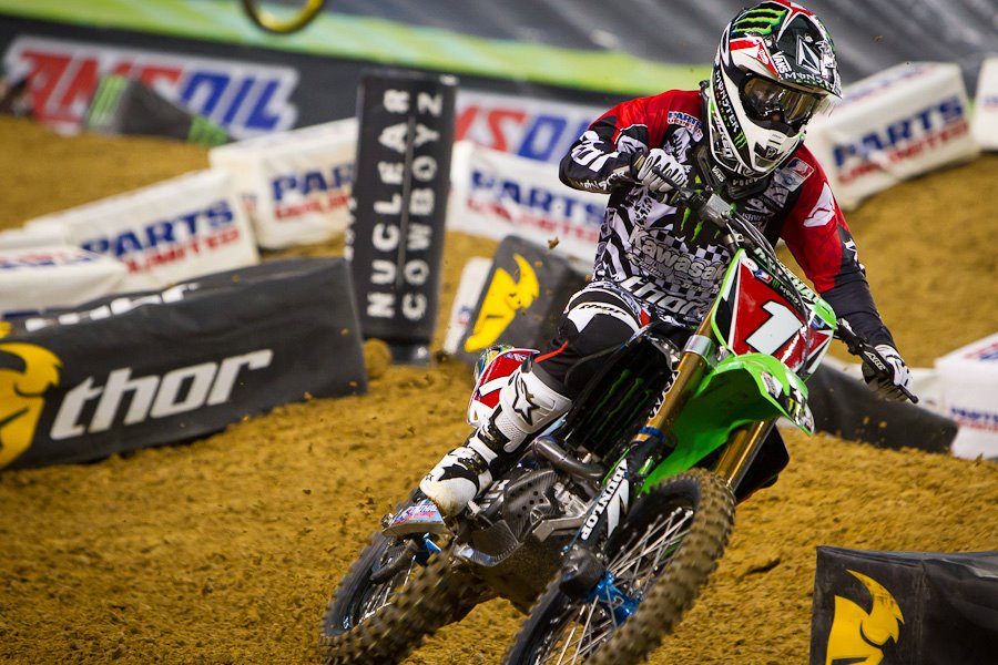 450 Supercross Heat 1 - Monster Energy/Pro Circuit/Kawasaki's Broc Tickle grabbed the holeshot, but was quickly overtaken by defending champ Ryan Villopoto. Jake Weimer came out of the first lap in fourth, but shortly worked his way past Jeff Alessi and Tickle to take over second place. Ryan Dungey had an unfortunate crash right after the holeshot that set him all the way at the back of the pack. It was not until the seventh lap that Dungey found his way into a qualifying position. At the finish it was Villopoto in first, followed by Weimer, Tickle, Davi Millsaps, and Justin Brayton in fifth. Dungey qualified ninth.