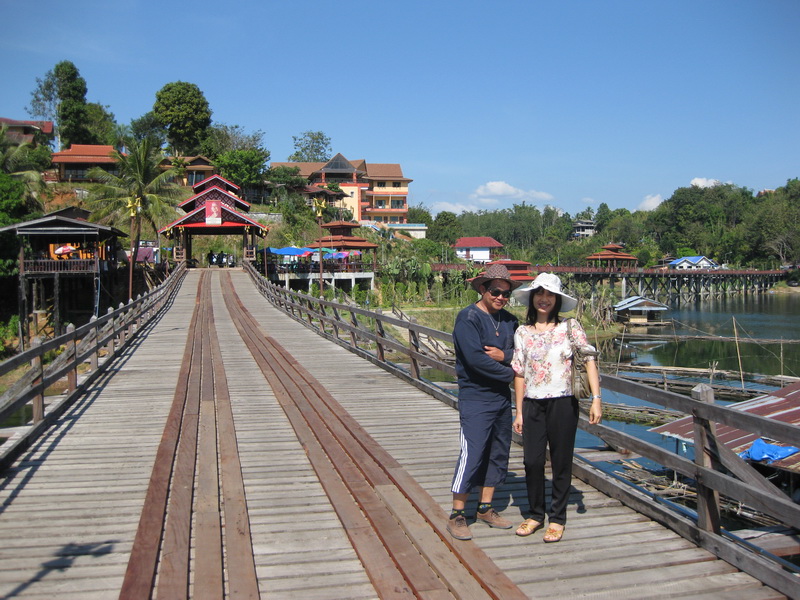 บนสะพานไม้หลวงพ่ออุตตมะหรือสะพานมอญ แหม!รักกันเหลือเกิน นะครับ