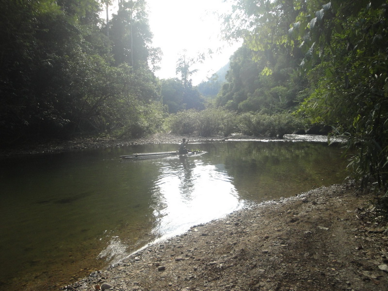 ผมจึงนำทางลงสู่แม่น้ำสุริยะ แล้วลงช่องเขาเลียบหน้าผาทางชันมากลงสู่เบื้องล่าง เป็นลำธารสายเล็กๆไปเจอรอยรถเอ็นดูโร่เก่าของกลุ่มฝรั่ง4คนที่ไปเที่ยวเลตองคุเมื่อวันศุกร์ที่ผ่านมาข้ามไปฝั่งจังหวัดตาก ที่จริงผมก็ไม่แน่ใจว่าลำธารนั้นคือแม่น้ำสุริยะ พอดีหันไปเจอพระธุดงค์กับลูกศิษย์กระเหรี่ยงคนนำทางเดินมาจากฝั่งจังหวัดตากเพื่อไปอำเภอสังขละบุรี ผมจึงสอบถามพระ ได้ความว่านี่คือแม่น้ำสุริยะของแท้ แต่ด้านล่างแม่น้ำจะใหญ่กว่านี้ต้องลงไปอีกประมาณ1กม. แล้วไปหมู่บ้านเลตองคุ อ.อุ้มผาง จ.ตาก อีกประมาณ20กม.