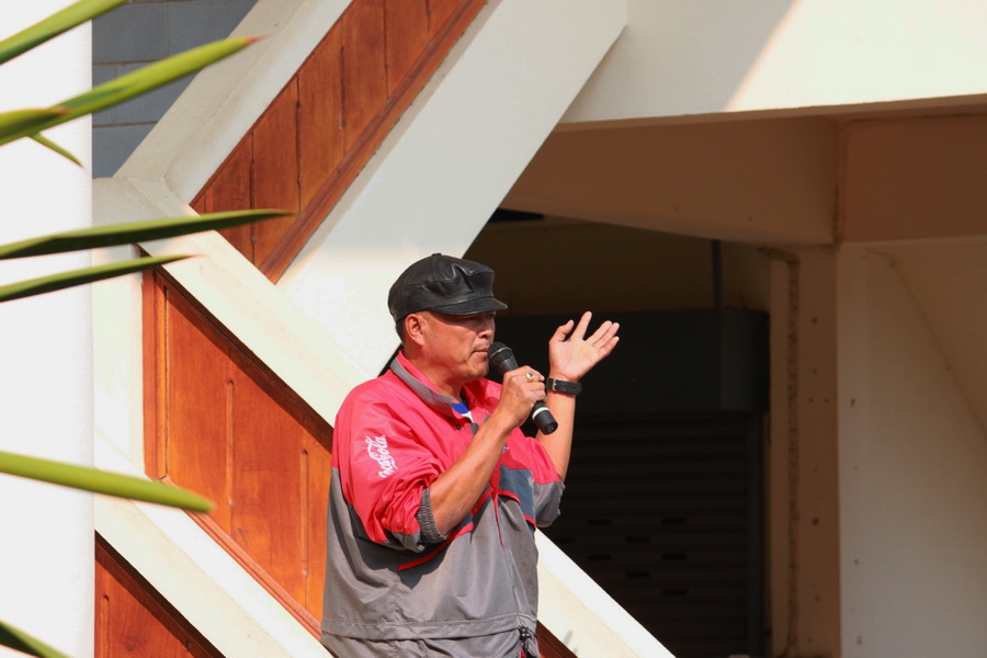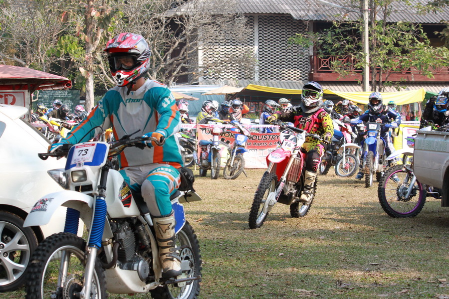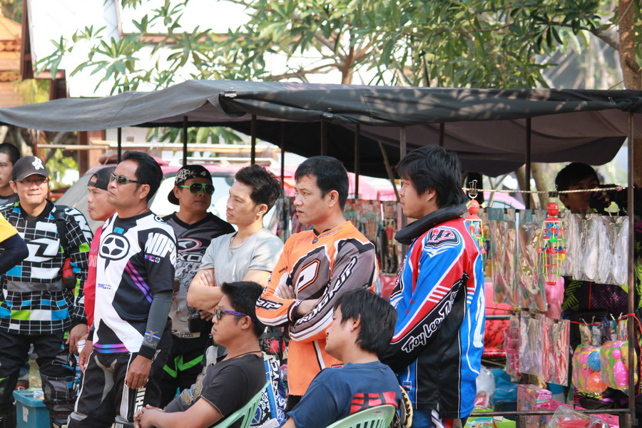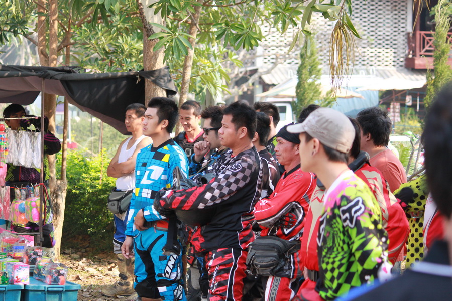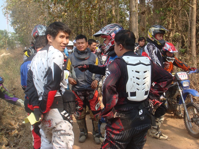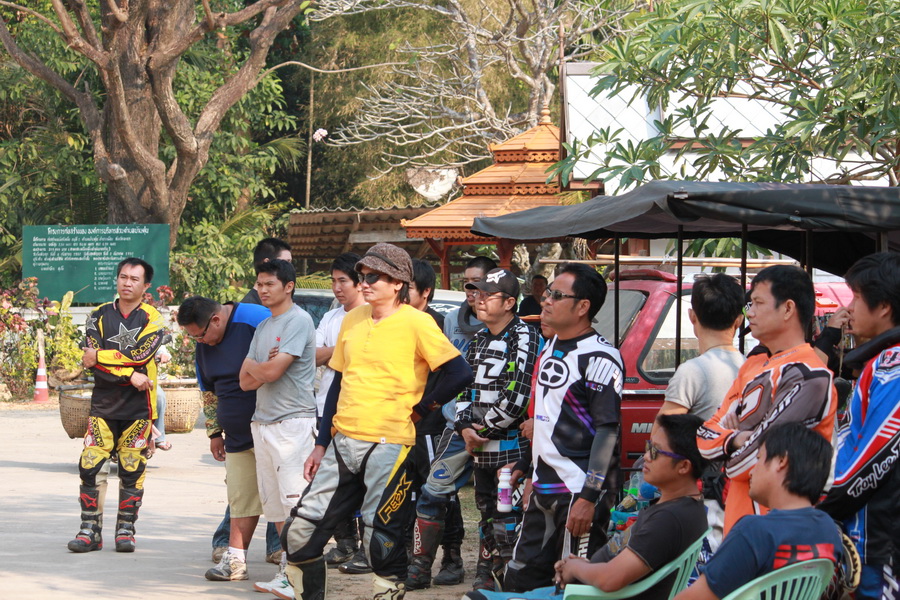 กลุ่มนักแข่งกำลังฟังป๋าจวบอธิบายรายละเอียดต่างๆก่อนออกไปยังจุดปล่อยตัว