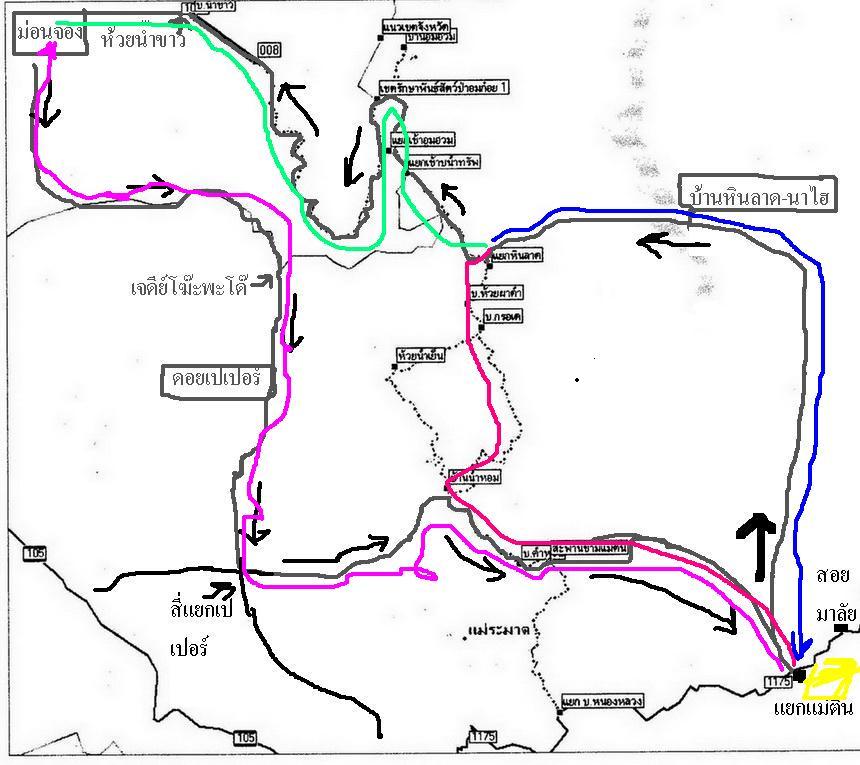 ข้อสรุปล่าสุด (ไม่ต้องโหวตแล้วครับ) เข้าแม่ตื่น ไปน้ำหอม เข้าห้วยสินา(ป๋าหน่อยเคยไปแว้ว) ห้วยสินาคี -เปเปอร์ เจดีย์ใหญ่ ม่อนจอง(นอนครับ นอนที่ม่อนจอง) วันอาทิตย์ กลับทางเส้นเขียว ผ่านห้วยน้ำขาว ปากทาง อูมฮวม มาพบกับพี่คม ป่าไม้และช่างทรายฯลฯ ที่แยกหินลาด พากันเข้าหินลาด แล้วกลับออกแยกแม่ตื่น ตามเส้นสีน้ำเงิน โดยปลอดภัยทุกๆ ท่าน /คุยกับพี่เต่าแว้ว ตามนี้ เป๊ะ