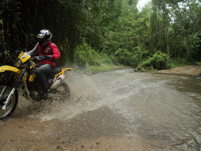 ลุยน้ำห้วยแรกหลังด่านป่าไม้ดงพง น้ำไม่เยอะมากนัก คันดำผ่าน ส่วนคันเหลืองดับกลางน้ำ