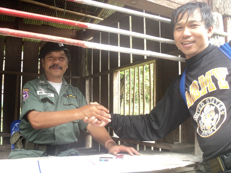 ถึงฐานต.ช.ด.แล้ว จอดลงชื่อกันทุกคนเพื่อขออนุญาติผ่านทาง