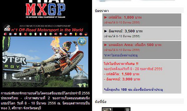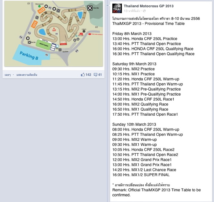 โปรแกรมการแข่งขัน ThaiMXGP2013