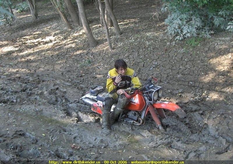 รูปนี้คลาสสิคสุด.....อิอิ ถ้าเจอทางเป็นร่องลึก แบบนี้ มองซ้าย-ขวา แล้วไม่มีทางไปที่ดีกว่า ตรงหน้าแล้ว......ตรงกลางร่อง ส่วนที่ใอ้เจ้ารถ โฟร์วีล มันครูดไว้นั่นแหละ! ดินจะแข็งสุด หน้าอาจเป็นโคลน แต่ไม่เละ.....เล็งตรงกลางให้ดี...ขาซ้าย - ขวา ประคองให้ดี ยาวแค่ใหนก็ ดีกว่าไปตามร่องล้อ ซึ่งข้างหน้าไม่รู้ว่าจะลึกแค่ใหน แน่นอน แต่ให้ดีละอย่าตกไปในร่องล้อ ข้างใดข้างหนึ่งก็แล้วกัน บางทีเจอบางหลุม พ่อฯปั่นใว้ ซะเกือบมิดหัวก็มี อิ อิ และใอ้ร่องลักษณะอย่างในรูป ที่เกิดจากทางไปตัดกับลำห้วย นั้น บ้างครั้ง มันก็หลอก ให้คิดว่าลึก และดิน จะเละ.....แต่บ้างครั้งถ้าตัดสินใจเดินไปหยั่งดู อาจจะช่วยให้ ไม่ต้องเสียเวลา ไปกับการอ้อมไปเปิดทางใหม่ ประหยัดแรง และเวลาได้ โข อิ อิ ........