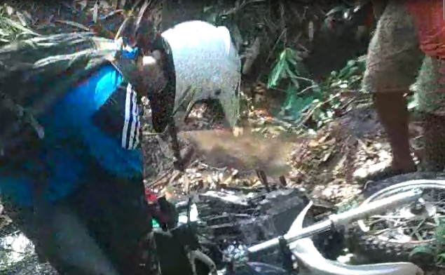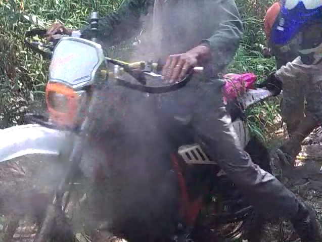 พี่เล็กบอกไปทางนี้ดีกว่า แกเลยขี่ลงข้างทางอ้อมไปขึ้นข้างหน้าไหล่ทางสูงพอประมาณพอลงได้ง่ายกว่าลุยไป และเซฟเวลาด้วย