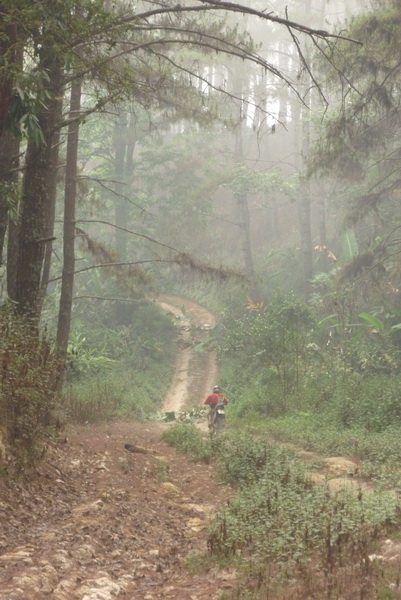 ขี่ไปจนฟ้าเปิด จอดรอหน่วยระวังหลัง ยังไม่มาสักที ดับเครื่องเสียง วอก เสียงนก ฯลฯ ดังลั่นป่า(มันคงส่งเสียงเตือน เพราะได้ยินเสียงแมงกะไซต์ ที่ไม่คุ้นเคย ให้ระวังภัย) ไพเราะเพราะพริ้งมาก และป่าอุดมสมบูรณ์มากครับ ตั้งแต่เคยเห็นป่ามาตั้งแต่เกิด ฝากไว้ก่อนเถอะ ม่อนจอง ให้ช้างลงก่อน ผมจะไปใหม่