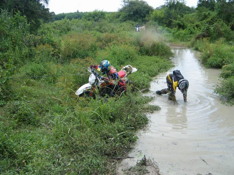 ทางเส้นเก่ากับสายน้ำใหม่ๆไหลลงไปยังอ่างด้านข้าง เพื่อความสุขสนุกสนานเราต้องลุยข้ามมันไป Goๆๆๆๆๆ