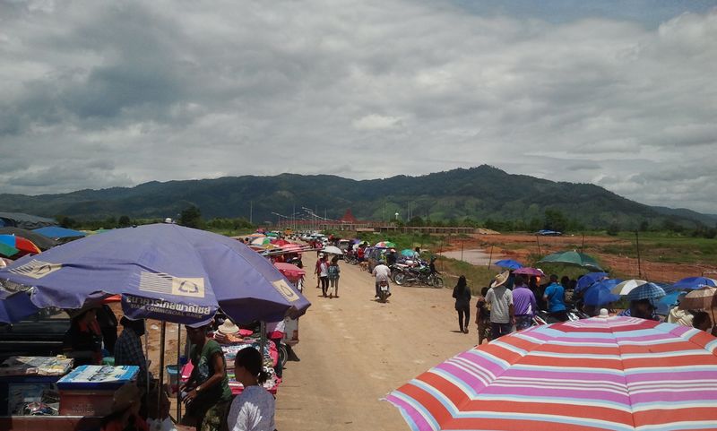 จัดที่ทางขึ้นสะพานข้ามแม่น้ำโขง