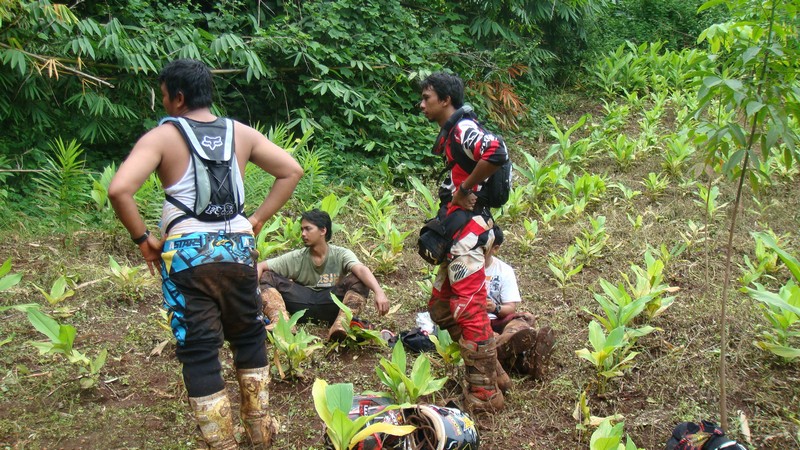 ขึ้นกันมาเกือบหมดแล้วครับ ร่วม 20 คัน พักเหนื่อยกันก่อนรอคำตอบจากพวกเข้าไปเจาะทาง เสียงลั่นกันอยู่ในซอกเขา