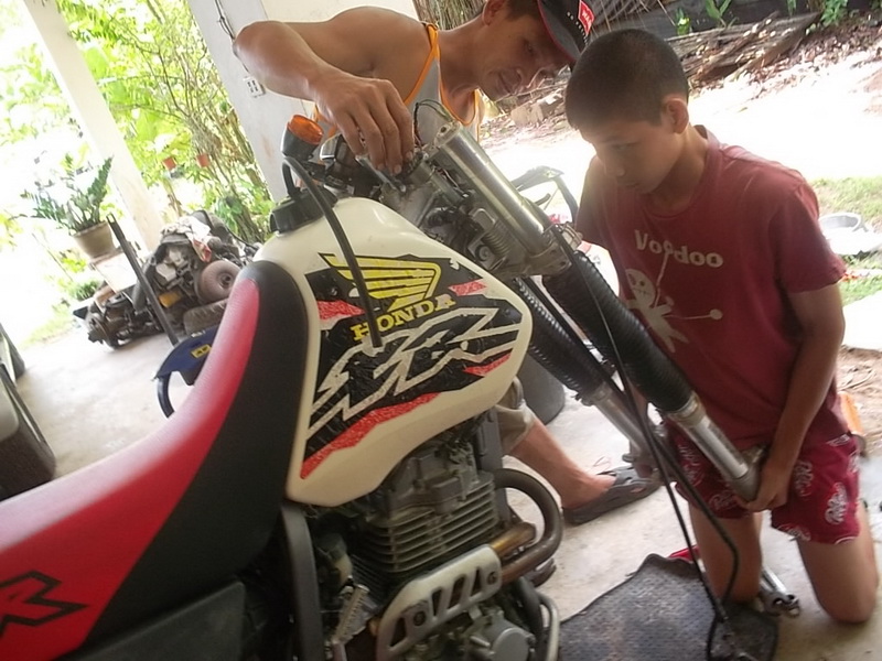 ภาพนี้......เก่าญี่ปุ่น อีกคัน ที่ไม่เก่าเลย ปี 98 สตาร์ท ไฟฟ้า คาร์บูเฟรทสไลท์ ท่อ RSV ......รถคันเก่าอีกคัน ที่ผมปล่อยไป.....สดมาก เดิม ๆ ไฟเลี้ยว ครบ คนขาย พรรคพวกกัน ไปเอามาจาก โรงพักที่ญี่ปุ่น จอดคลุมผ้าไว้... (คิดว่าหาดูยากนะครับรุ่นนี้)ในเวบป์ นี้ เห็น แว๊บ ๆ ในกลุ่ม ไบซัน , กลุ่ม น้าเหลียว, ศรีราชา ชลบุรี ,และคล้าย ๆ จะ เชียงราย ถ้าจำไม่ผิด อีกซักคัน......นอกนั้น ที่เห็นบ่อยสุด เยอะมาก ก็ ถังลาย ปี 96 ................ที่เกริ่น มาซะ ยาว ไม่ได้จะอวดอ้าง อันใด......แต่อยากจะ แบ่งปัน สำหรับ มือใหม่ และมือ กลางเก่ากลางใหม่ (มือเก่าเก๋า ๆ คงจะรู้อยู่แล้ว?)ว่า สำหรับรถ เก่าญี่ปุ่นแล้ว ไม่ว่าสภาพ ภายนอก ที่เห็น จะสวยสด ขนาดใหน อุปกรณ์ และชิ้นส่วน อาหลั่ย เป็นของ เก่า (ยกเว้นพวกเก่าไม่จริงปี ใหม่ ๆ นะครับ) บางคัน ถูกจอด ตากแดด ตากฝน ตากหิมะ อยู่ นาน กว่าจะมาถึงมือเราฯ ย่อมถูกกัดกร่อน ผุ พัง เสื่อมโทรม เสียหาย ไป ตามกาลเวลา ...........ครับ จากตัวอย่าง รถคันนี้ สิ่งที่ ผมเจอมาที่ สำคัญ ๆ สำหรับ การใช้ งานที่ หนัก ๆ สมบุก สมบัน บ่อย ๆ ก็คือ ลูกปืนคอฯ และ ลูกปืน แกน สวิงอาร์ม หลัง จารบีแห้ง และเป็น สนิม โดยเฉพาะ อย่างยิ่ง ลูกปืนคอ ลองดูเถอะครับ ยิ่งปี เก่า ๆ สภาพ โทรม ๆ ประกอบให้ โดยร้านฯ หรือ ช่าง ที่ไม่ละเอียด หรือ พิถีพิถัน พอ แทบ จะทุกคัน ยิ่ง เจอเครื่องฉีด น้ำแรงฯ เข้าไปด้วย นับถอยหลังรอได้เลย...... ( แต่ถ้า ประกอบเอง ถอด อัดจารบี ให้เรียบร้อยซะ ก็ใช้กันยาว) อาการคอแข็ง ฝืน ๆ หันซ้ายหันขวา ยาก เหมือนคนตกหมอน จะมาเยี่ยม เยือน ถ้าเจออาการนี้แล้ว ก็ถอดออกมาล้าง ดูลูกปืน และถ้วยรอง ถ้าเป็นสนิม และรอย เกินเยียวยา ก็ จัดการเปลี่ยน พร้อมอัดจารบี ซะ ให้เรียบร้อยไป ........สำหรับสวิงอาร์ม จะกล่าวถึง ที่หลัง เพราะจะเกี่ยว กับโช๊ค หลังด้วย อิ อิ ........