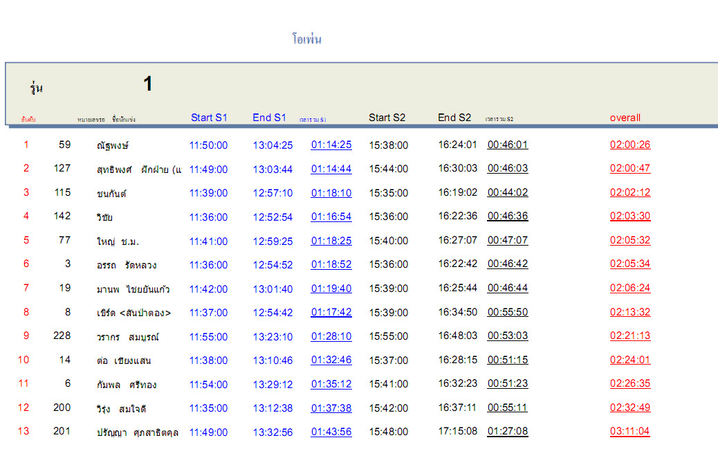 แหม..เห็นเวลาแล้วห่างกันแค่จุดเศษๆเท่านั้นเองนิ ฝีมือพี่น้องล้วนแต่เก่งๆกันทั้งนั้นครับ....
