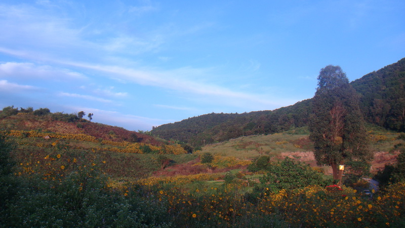 จากฝั่งนี้ มองไปอีกฝั่ง แนวดอกบัวตองที่เห็นไกลๆครับ ช่วง เอสโชว์ สวยๆครับ 2 กม.