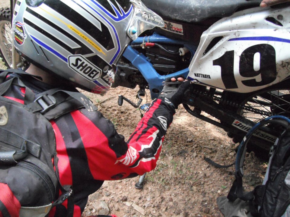 รถดีแต่ไม่สมประกอบ(จ่ายเงินไม่ครบหรือเปล่า) เลยไม่ได้ขาตั้งมาด้วยต้องพิงต้นไม้