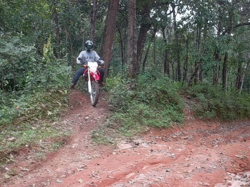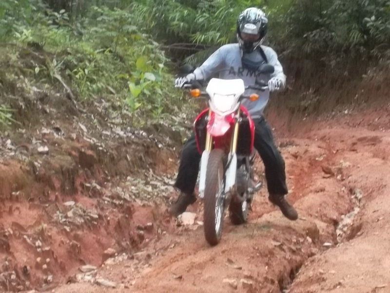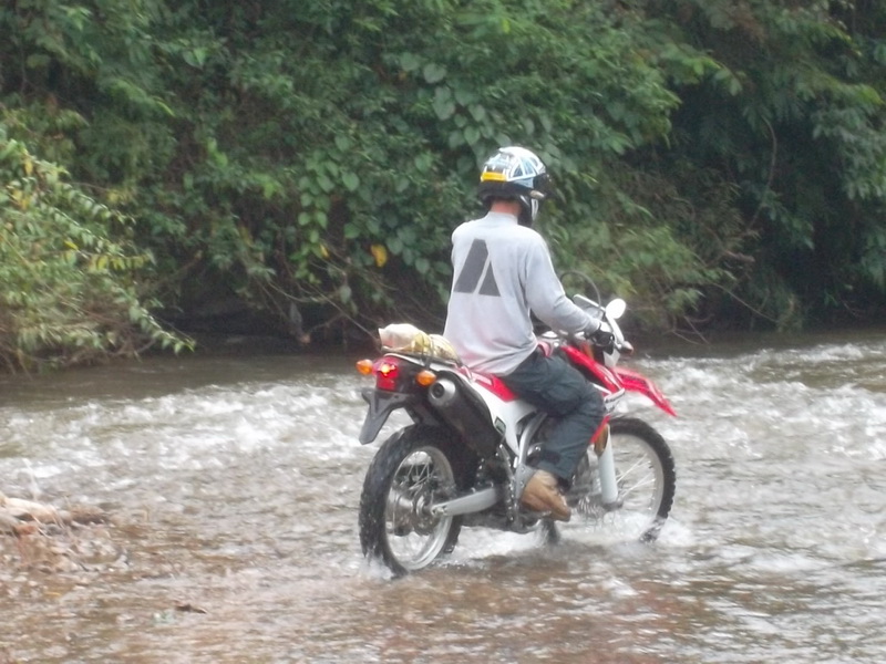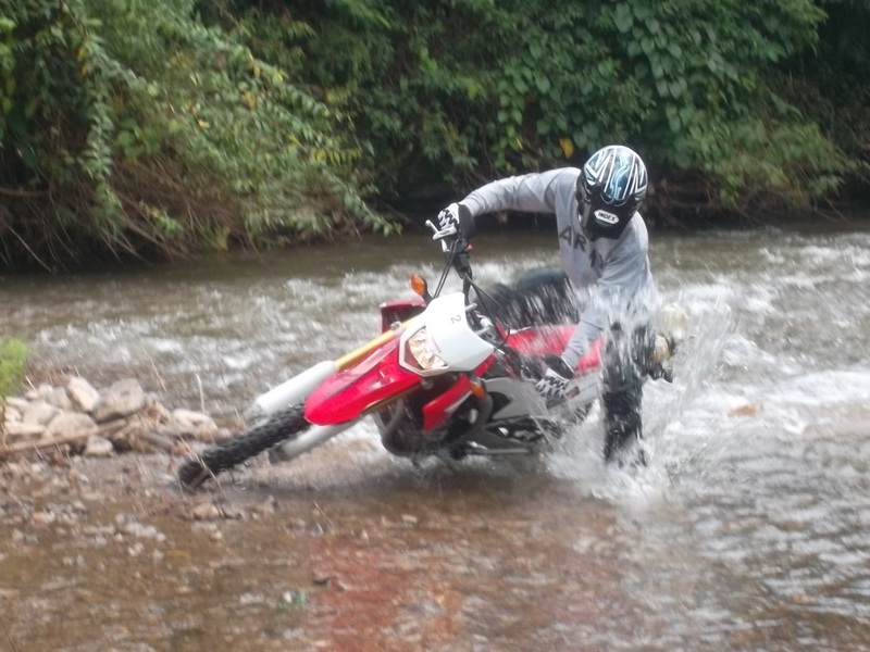 ขึ้นมาจากน้ำได้ก็.........ซัด แบบ ยาว ๆ เพราะต้องรีบทำเวลา เนื่องจาก หนทาง ยังอีกยาวไกล แต่...........ดอกที่สองก็ตามมา นอกจาก ฝีมือ อันอ่อนหัดฯ ของคนขี่แล้ว ส่วนนึง น่าจะ จากความ อุ้ยอ้าย ที่หลายคน เรียกมัน ว่า " หนัก " นั่นเอง แต่ทั้งนี้ทั้งนั้น มันจะเสียหลัก ทำให้เกือบล้ม เอาบ่อย ๆ ก็อีตอน ที่ พยายาม จะตัด ร่อง......น้ำ และรอยล้อ รถฯ ที่ มีโคลน และลื่น นั้นเอง.......( ว่ากันตามสภาพ เดิม ๆ แม้แต่ ยาง น่ะครับ )