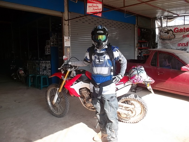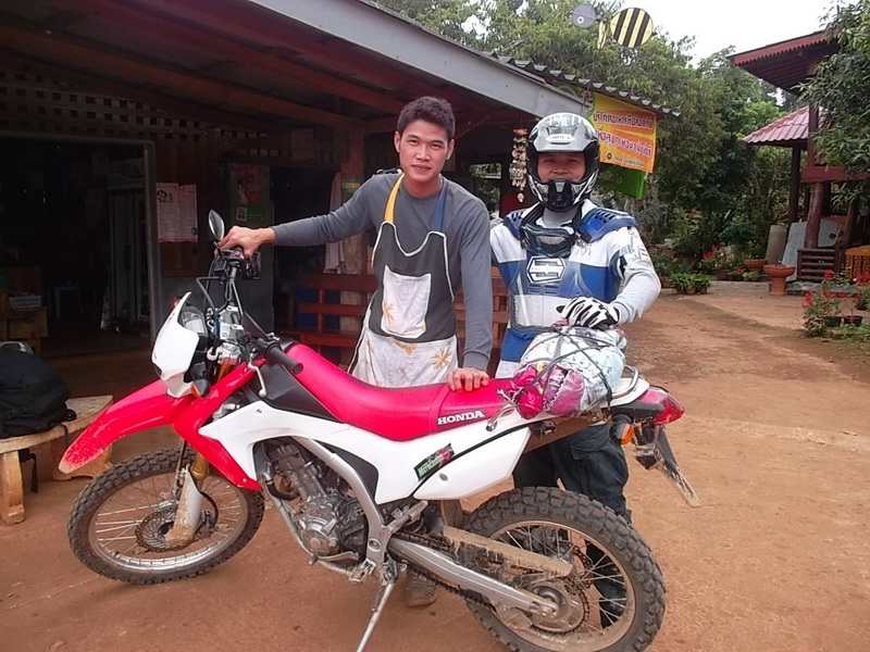 ยิงยาวทีเดียว กว่า 70 กม. ในทางดำ จากปาย- มาวัดจันทร์ จนมาสะดุดตา กับ yzf ที่ได้ข่าวว่า เพิ่ง ซื้อต่อมาจาก แม่ฮ่องสอน.......พอเจอหน้าเจ้าของ.....เลยรู้ว่าเป็นน้องคนนึงในกลุ่ม N บ้านวัดจันทร์ ที่เคยขี่ N ด้วยกันฯ เมื่อนานมาแล้ว แต่เดี๋ยวนี้ พัฒนาขึ้นซื้อเอา F มาขี่แล้ว........