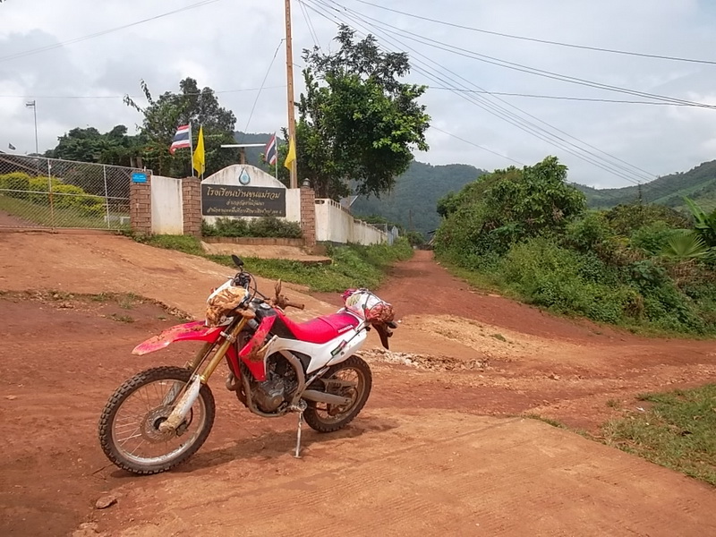 หลังจากนั้น ก็ถึงแยกนี้.......ที่คุ้นเคย และผมต้องตัดสินใจ อะไรบางอย่าง! "ขุนแม่รวม" ( ผมก็ได้จัด ไปอีก 1 ดอก แต่ซ้ำด้านเดิม ที่เป็นรอย ตั้งแต่ ออกมาจากร้านฯ แล้วครับ) ที่ต้องตัดสินใจก็คือ เลือกเส้นทาง ที่ขี่สนุก ตื่นเต้น และ วิว ดี แต่...อันตราย......เพราะบางจุด เป็น ซิงเกิ้ลแทรค ที่ไต่ ไปบน สันดอย แคบ ๆ และบางจุด ก็เป็น ขอบหน้าผา ซึ่งทำให้อดีนารีน สูบฉีด ได้เกือบทุกคน ที่ต้องผ่านเส้นทางนี้........ทั้งหมดที่เล่ามา ก็คือแยกที่เข้า ไปทางขวามือ ของโรงเรียนฯ ที่อยู่ในภาพ นั่นเอง........ซึ่ง จะทะลุออก ที่น้ำตกแม่สุรินทร์ ได้เลยทำให้ทำเวลาได้ดี (ถ้าไม่เกิดอะไรขึ้นนะ) กับอีกเส้นคือตรงไป ผ่านแม่หยอด ทะลุ ปางอุ๋ง ( คนละอุ๋งกับอ.เมืองแม่ฮ่องสอน)ขึ้น ........แต่ในที่สุด ผมเลือกตรงไป โดยยึดหลัก ปลอดภัยไว้ก่อน เพราะมาคนเดียว อิ อิ .......