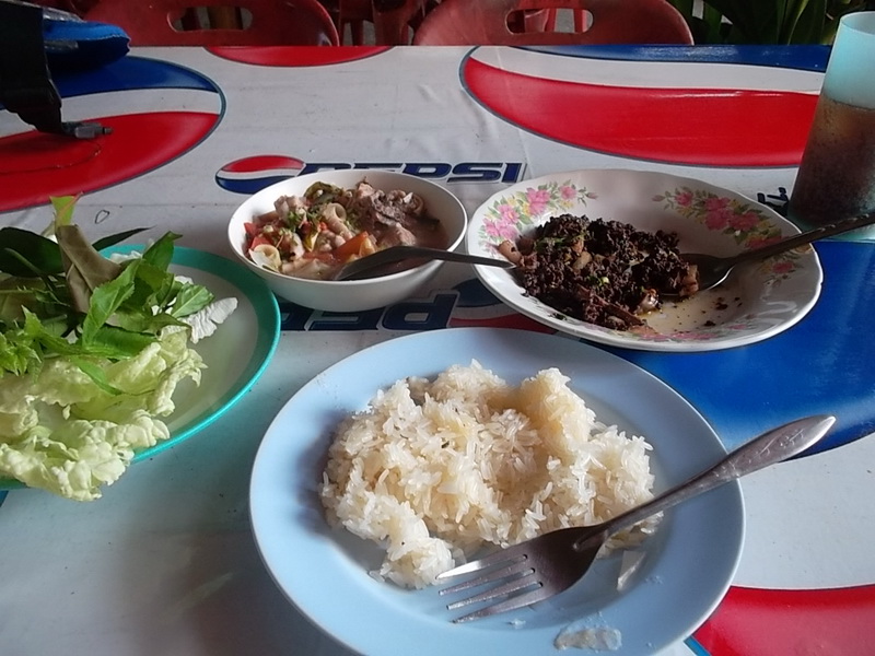 มาถึงตัว อ. ขุนยวม บ่าย 2 โมงกว่า วิ่ง เข้าหาร้านข้าวเลยครับ...มาทางเหนือ ก็ต้องกินฯ กันแบบ คนเหนือครับ ที่ขาดไม่ได้คือ ลาบหมู ( คั่วสุก) กะ แกงอ่อม แต่วันนี้ มีแต่ อ่อมเนื้อ เลย สั่งเป็น ........จำชื่อไม่ได้ แต่คล้าย ๆ ต้มยำไก่ ( กรุงเทพฯ) ร้านประจำ กินกันตั้งแต่ สมัยโบกรถฯเที่ยว ตอน เด็ก ๆ อิ อิ ......
