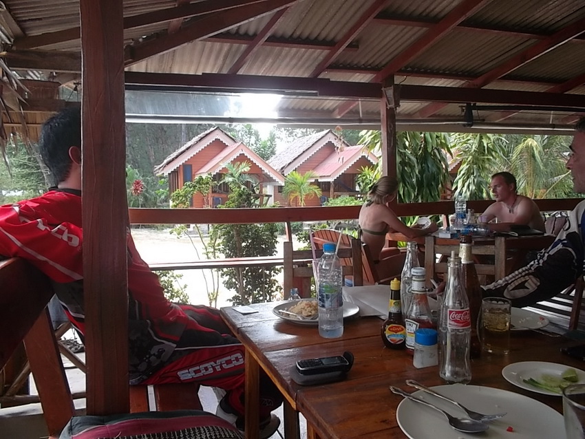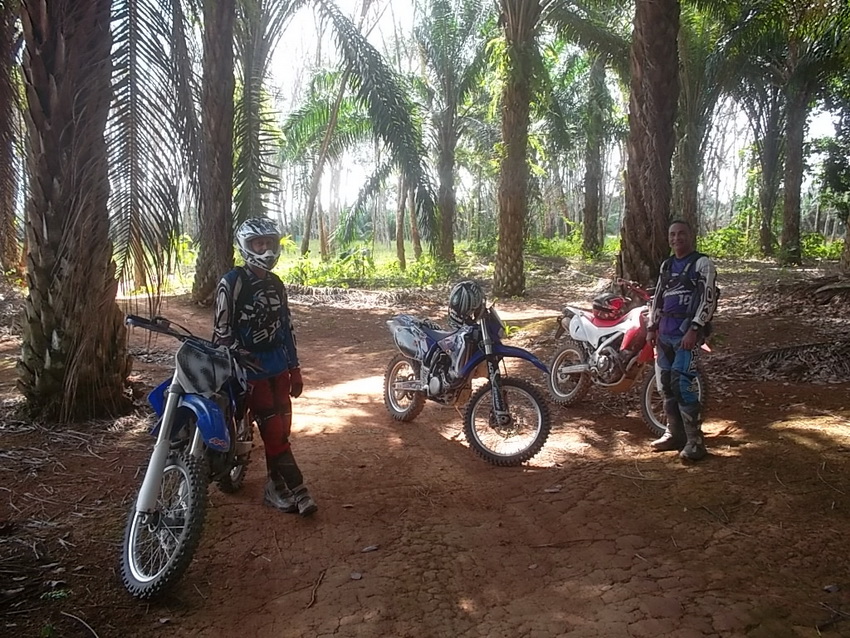เติมน้ำมันเสร็จ!..............ก็จัดกันเลย ลัดไป ลัดมา ระหว่าง สวนยาง กับสวนปาล์ม หลังจากหลุด มาจาก ถนนดำ สายเพชรเกษม (สายเก่า) ก็ได้เวลา พัก ยก หายใจ หายคอ และสูบบุหรี่ กับจุด ที่ นายทอม จอมยกล้อ เคยจัด ไปหนึ่งดอกฯ แถว ๆ นี้ เมื่อ ฝน ที่ผ่านมา ..........