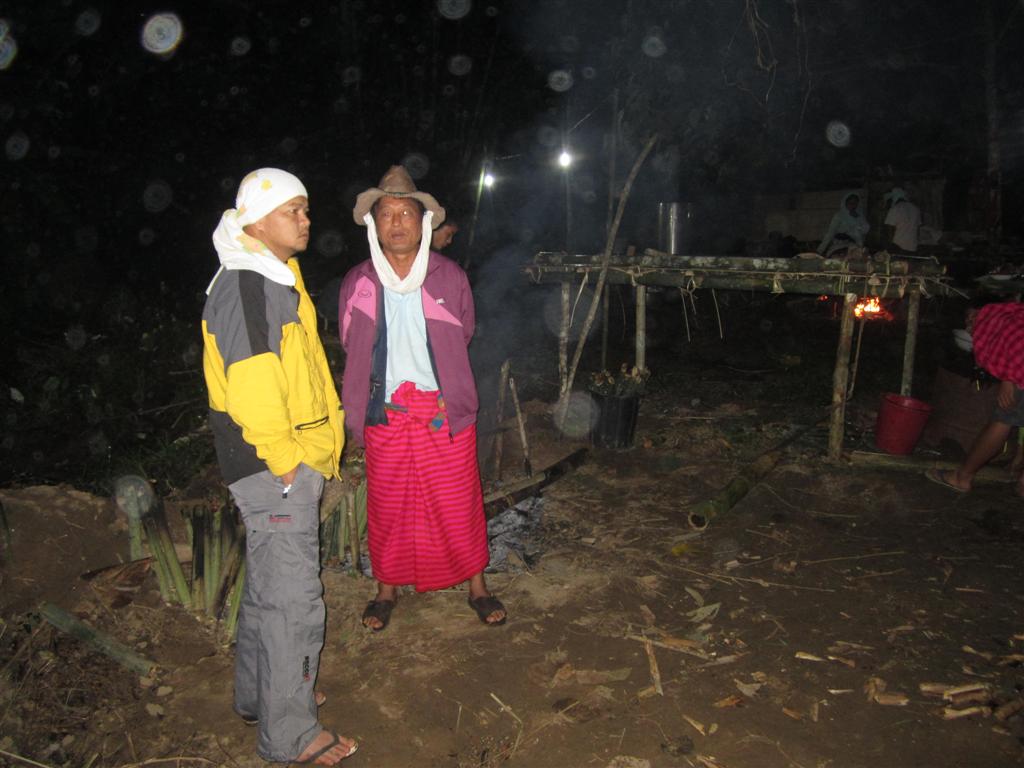 หลวงพี่เษมยืนสนทนา กับผู้นำหมู่บ้าน