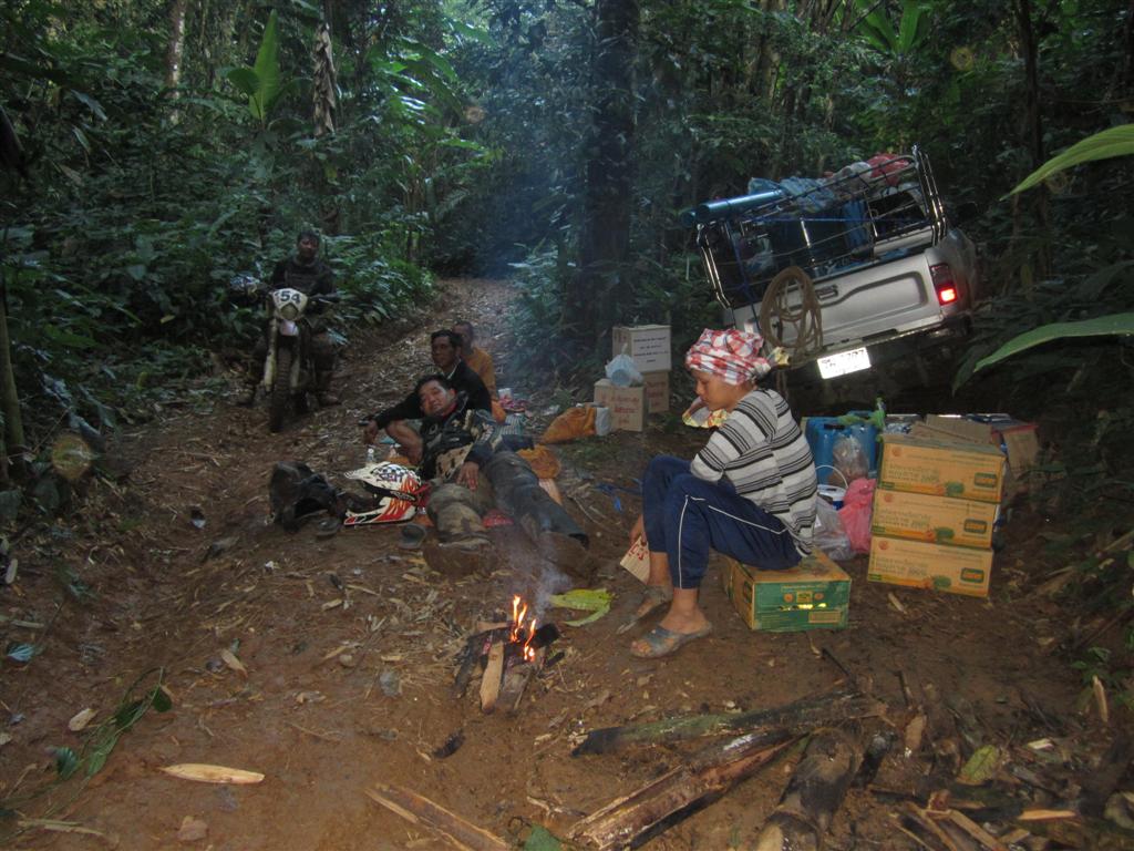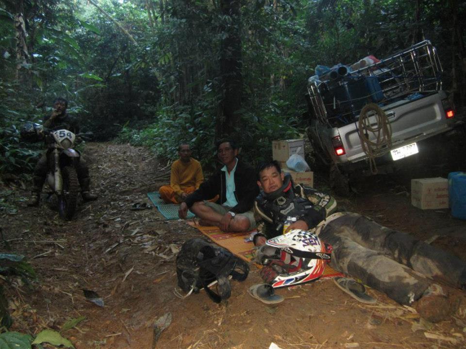 หลวงพี่กับลูกศิษย์ก่อไฟนอนเฝ้ารถพี่น้องออฟโรดที่เสีย"ยางหลุดขอบ"