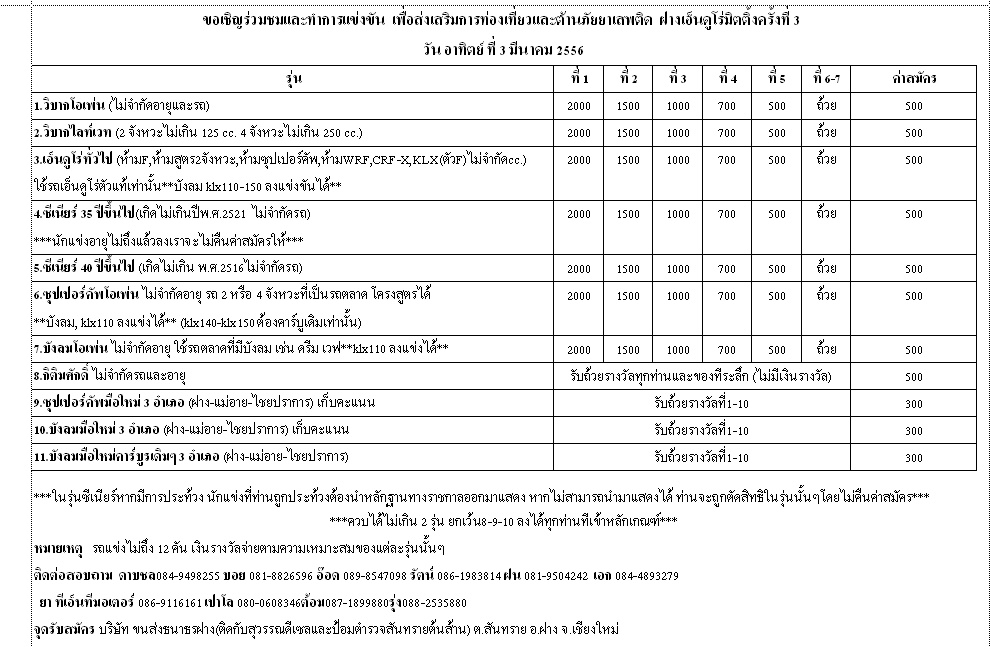 ขอขอบคุณเพื่อนๆพี่ๆ นักแข่งที่มาร่วมงานในครั้งนี้ครับ...ขาดตกบกพร่องหรือผิดพลาดประการใดก็ขออภัยมา ณ.ที่นี้ด้วยครับ