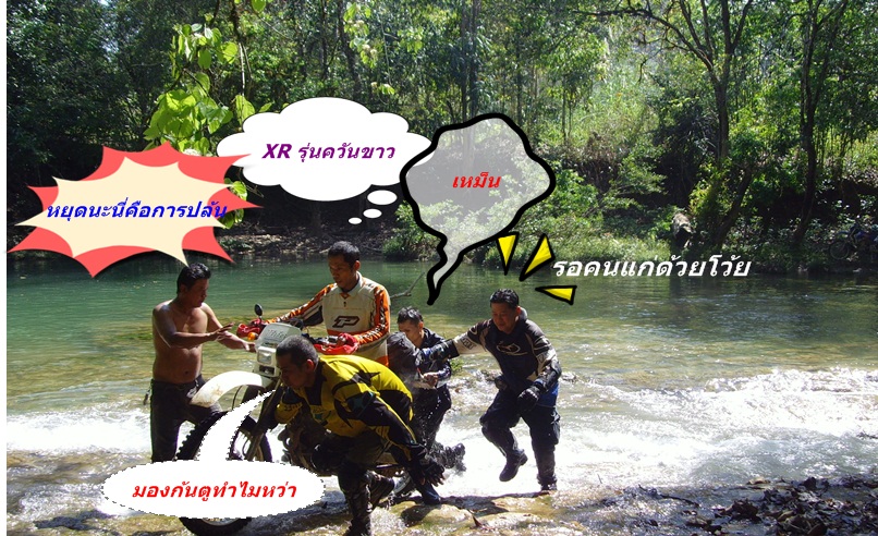 หลายสิ่งหลายอย่างที่ผ่านเข้ามาในกลุ่มของเรา ช่วยเหลือไม่ทอดทิ้ง เหนื่อย อิ่มอด เราก้าว เข็น ขี่ ลากไปด้วยกันจนถึงที่หมาย ถึงจะสบายไม่เหมือนกันแต่เราทั้ง 14คันไปถึงและกลับมาได้อย่างปลอดภัย ( แต่ภรรยาบ่นหน่อยนะ ) ภาพของผมอาจไม่ต่อเนื่อง แต่มี 4กล้องขาไปข้ามแม่น้ำตรงน้ำตก กลับทางแพ ทริปนี้ทำให้รู้ซึ้งถึงจิตใจของหลายคนว่า นอกจากชอบขี่เอ็นดูโร่แล้ว เวลาถอดหมวกจะเจอแต่หัวงูมากมาย ไม่เชื่อลองติดตามดู ต่อไป ขวัญใจคือ เบอร์ 49