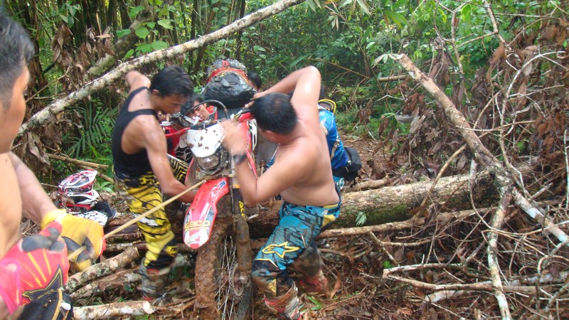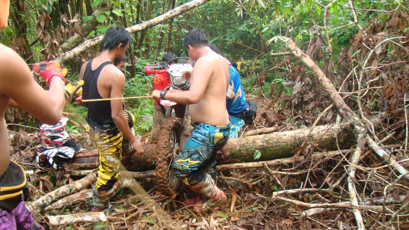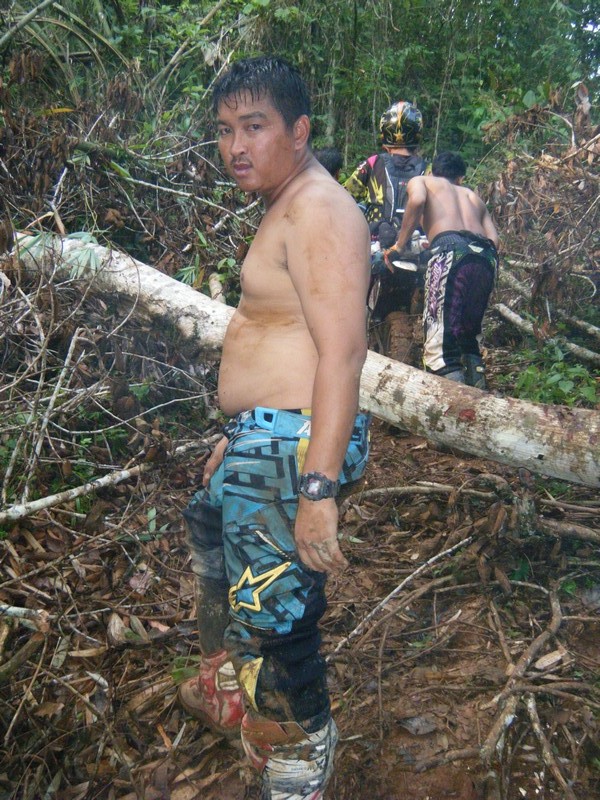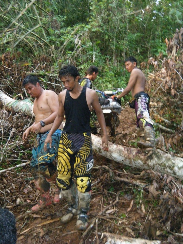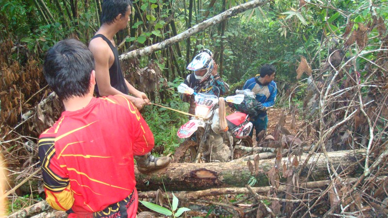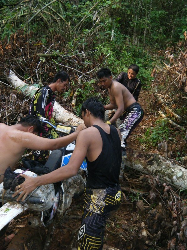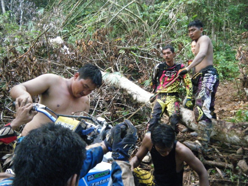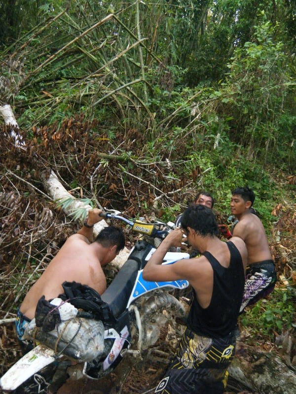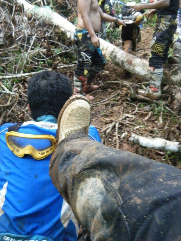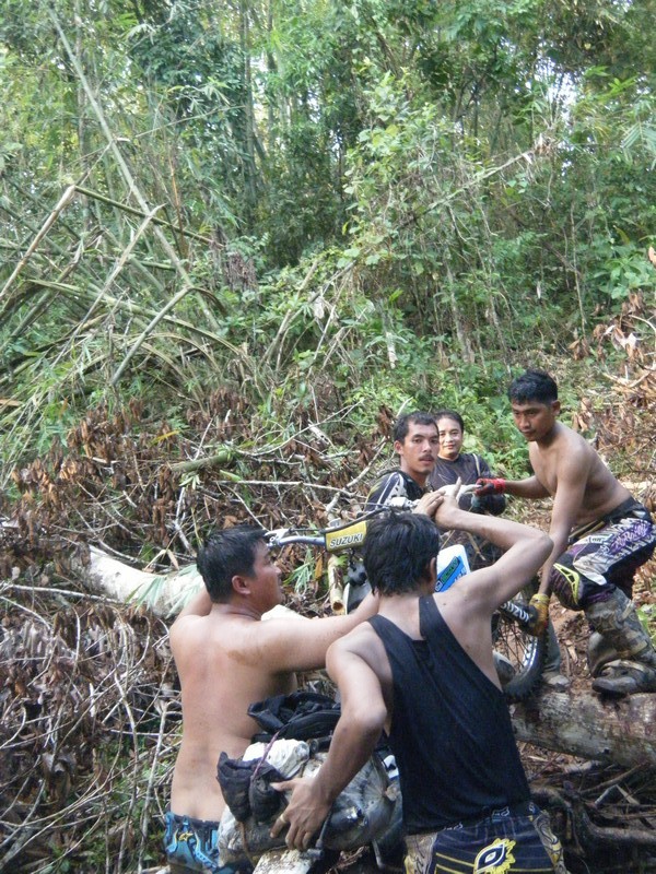 ข้างหน้ามีต้นไม้โค้นขวางทาง 2 ท่อนครับ....ที่สำคัญคือมันอยู่กลางเนินที่ลื่นนี่แหละ